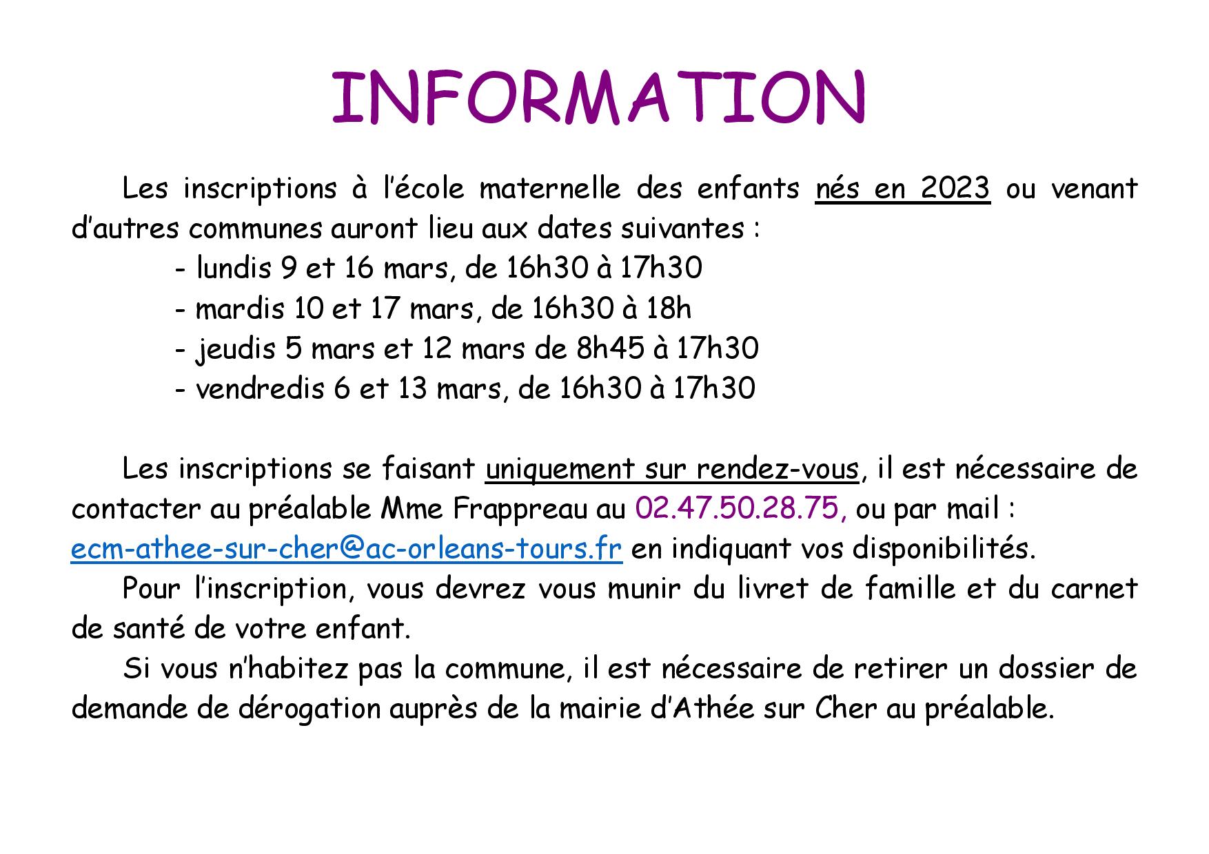 INSCRIPTION DES ENFANTS À L'ÉCOLE MATERNELLE