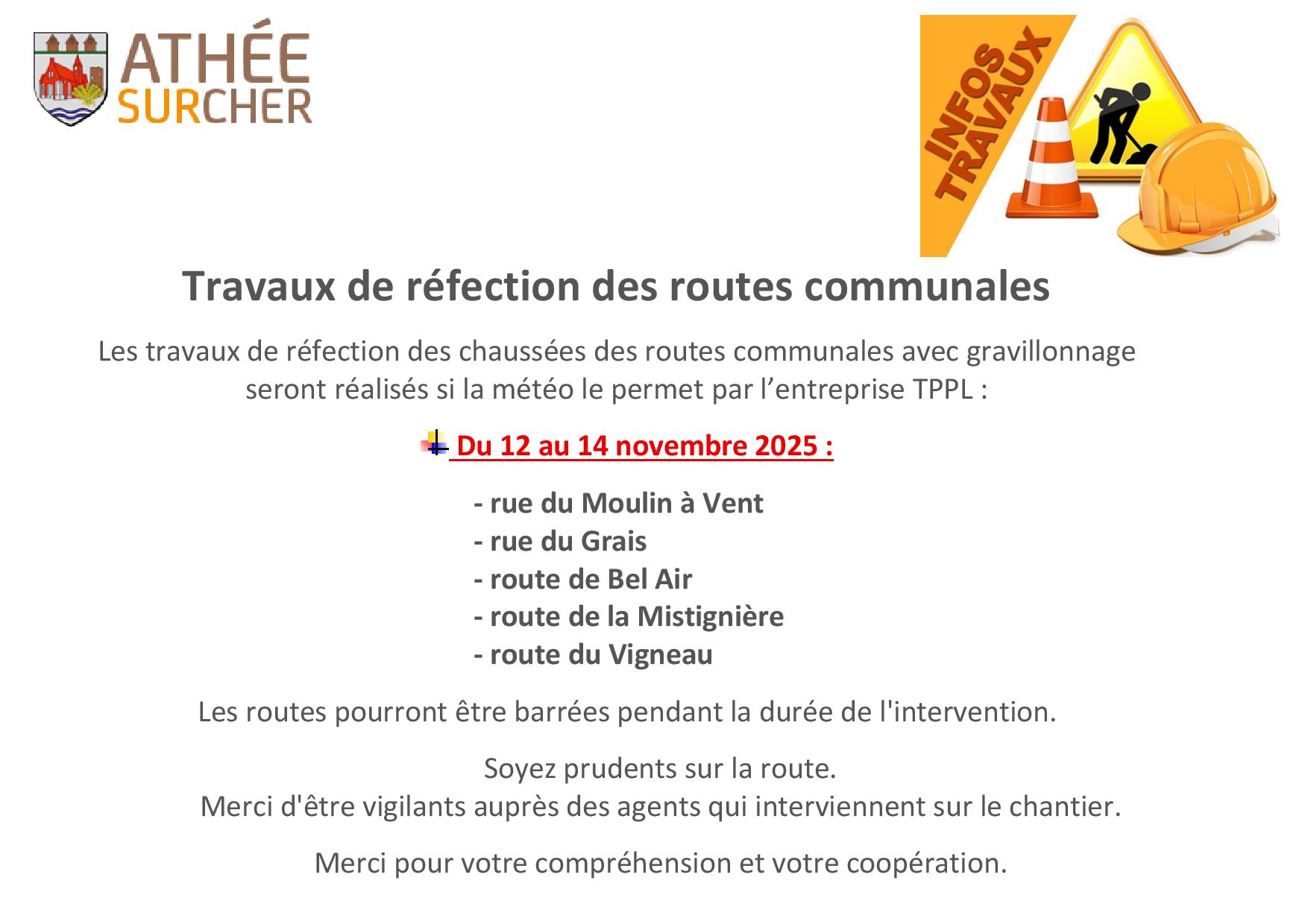 Travaux de réfection des routes communales avec gravillonnage