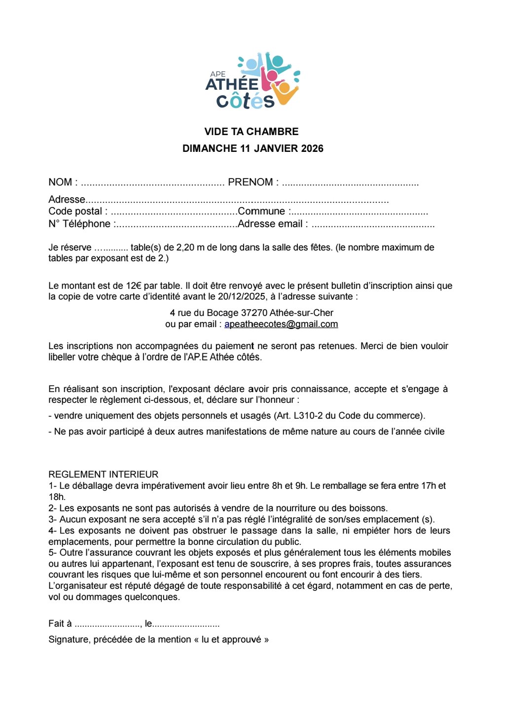 Renseignements et inscriptions avant le 12 décembre à apeatheecotes@gmail.com